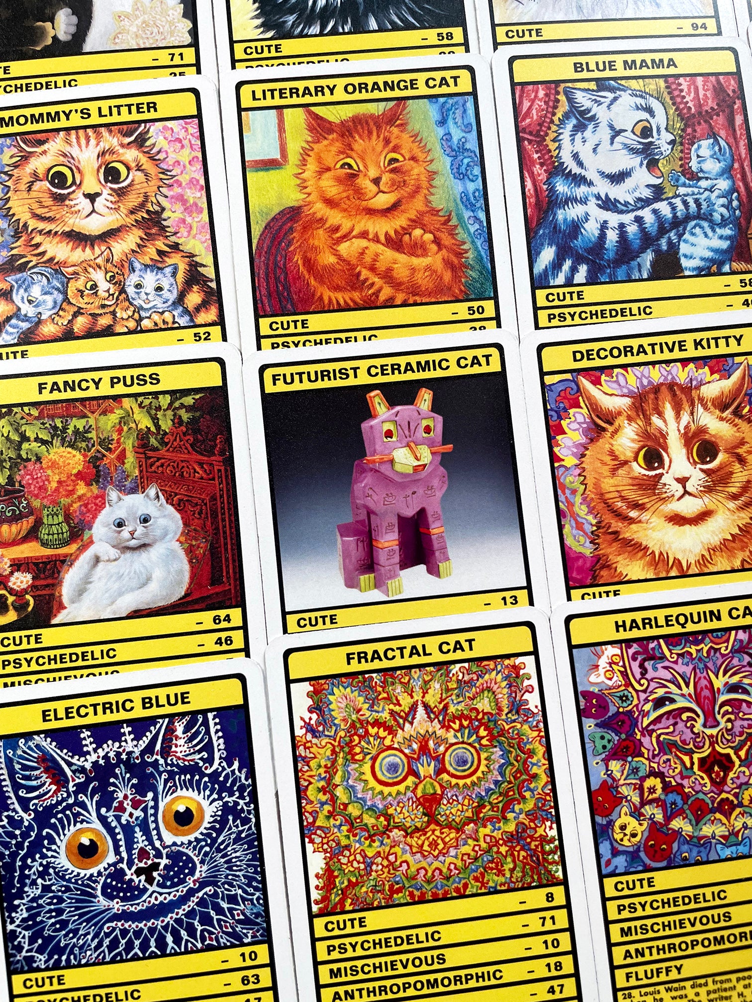 In the style of the classic 70s point battling card game... get ready to pit Louis Wain’s weird and wonderful cats against each other!